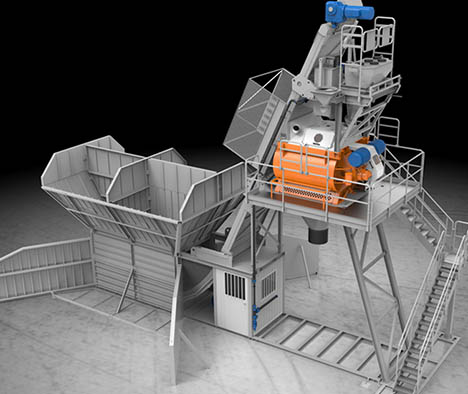 Concrete batching plant equipped with CIFA horizontal twin shaft mixer, consisting of a single module that can be transported by semi-trailer, easy and quick to install.and also consisting of mixing unit easy and quick to install and of one in-line aggregate storage and dosing unit