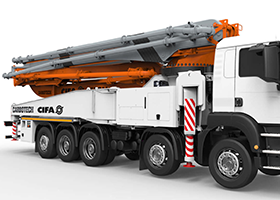 Boom: Booms on CIFA truck mounted pumps combine robustness and reliability. Each section was designed to have maximum structural resistance, reducing to a minimum areas subject to stress.