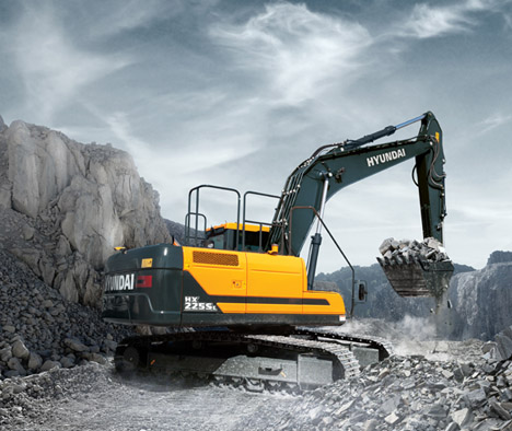 The 9-series of Hyundai Robex excavators with distinctive new styling including significant specification and technical improvements. The complete range that includes the new hydraulic system,the Himate System (Remote Management System) that uses GPS-satellite technology, and advanced cluster have been conceived as a true ‘global concept’ to meet the increasingly stringent international requirements on energy efficiency, safety, and environmental protection. These business solutions also include Hyundai’s legendary values of durability and reliability.